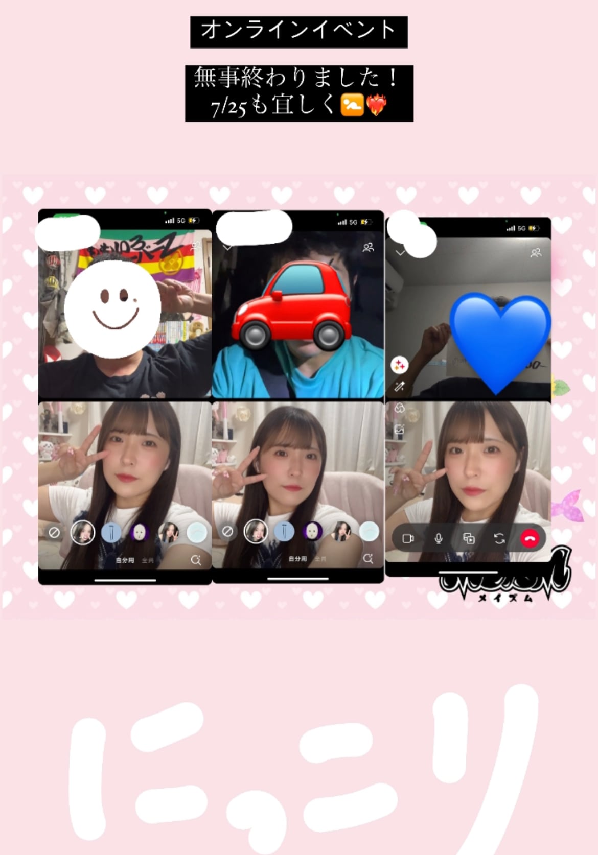 ※通話時にご当選者様以外の方が画面に映り込んだ場合や、画面に映っておらずとも声など間接的に他の方と一緒にいることが確認された場合は、強制終了させていただく事がございます。